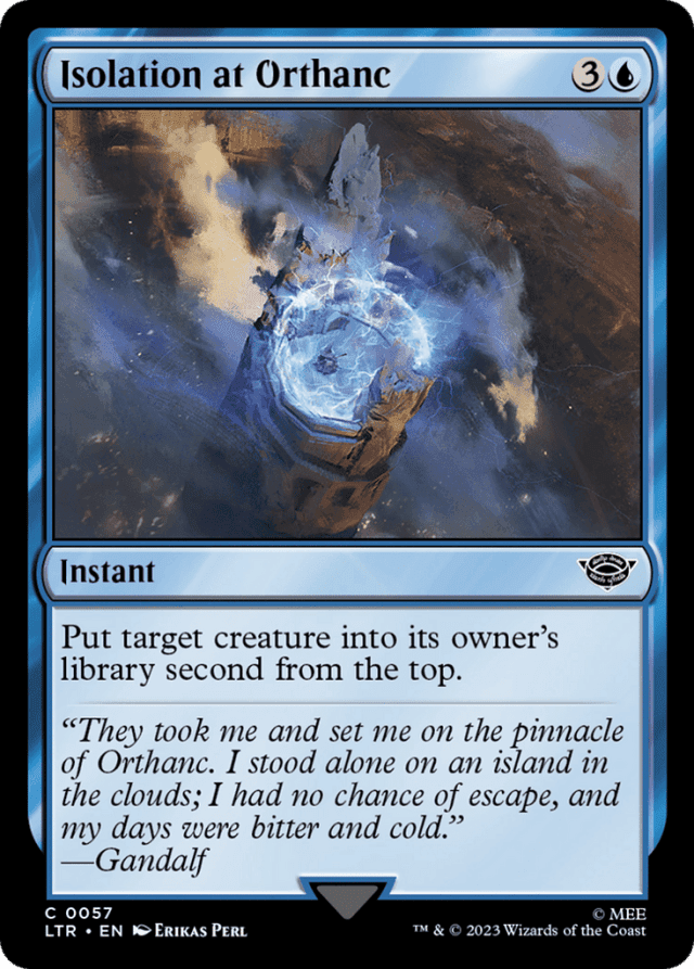 If the target creature's controller has zero cards left in their library when Isolation at Orthanc resolves, that creature becomes the top card of their library.