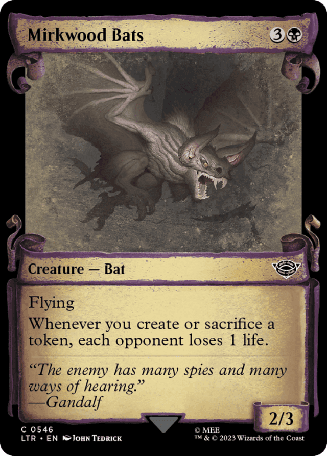 Flying Whenever you create or sacrifice a token, each opponent loses 1 life.
