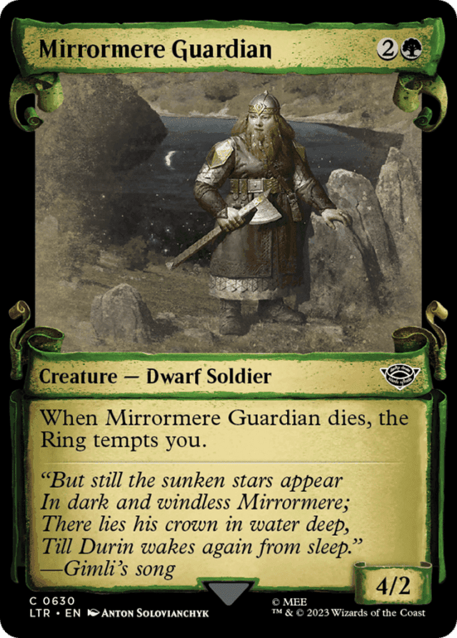 "But still the sunken stars appear In dark and windless Mirrormere; There lies his crown in water deep, Till Durin wakes again from sleep." —Gimli's song