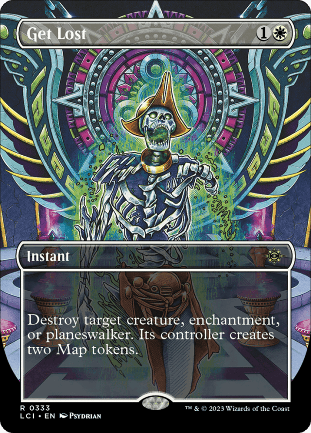 Destroy target creature, enchantment, or planeswalker. Its controller creates two Map tokens. (They're artifacts with "{1}, {T}, Sacrifice this token: Target creature you control explores. Activate only as a sorcery.")