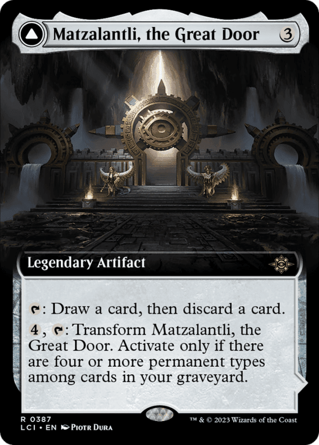 Cards with the ability word "fathomless descent" have abilities that care how many permanent cards are in your graveyard. — Some descend triggered abilities include intervening "if" clauses (i.e. "if you have [four or eight] permanent cards in your graveyard" in the middle of the ability). Each of these abilities checks your graveyard at the moment it would trigger to see if it does. If you don't have the required number of permanent cards in your graveyard at that time, the ability doesn't trigger at all. If it does trigger, it will check again as it tries to resolve. If you don't have the required number of permanent cards in your graveyard at that time, the ability won't resolve and none of its effects will happen. — The Core's activated ability is a mana ability. It doesn't use the stack and can't be responded to. — Transforming Matzalantli doesn't cause it to leave the battlefield. It also doesn't cause it to become untapped.