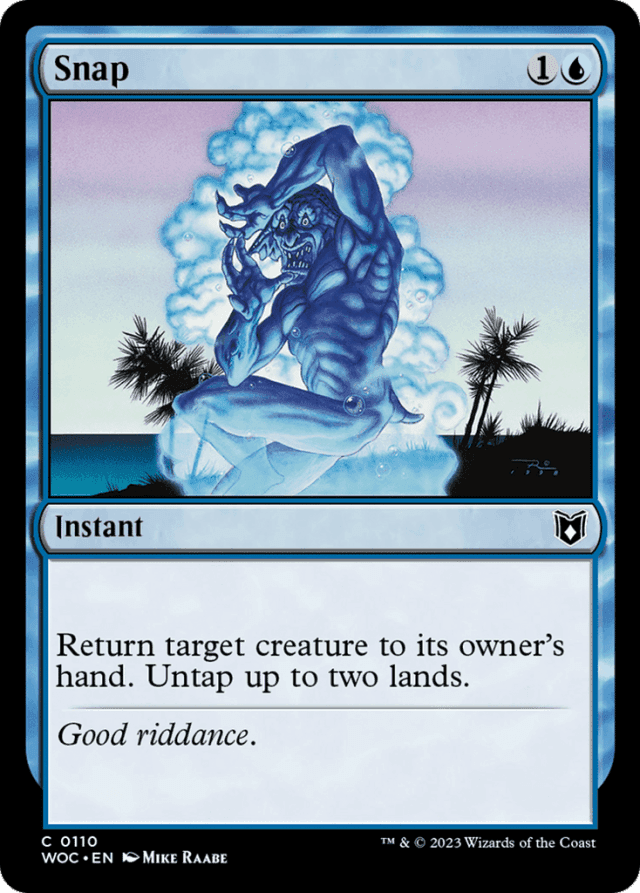 Return target creature to its owner's hand. Untap up to two lands.