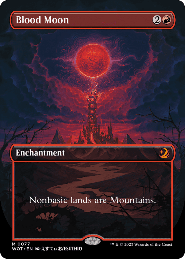 If a nonbasic land has an ability that causes it to enter the battlefield tapped, it will lose that ability before it can apply. The same is also true of any other abilities that modify how a land enters the battlefield or apply "as" a land enters the battlefield, such as the first ability of Cavern of Souls. — If a nonbasic land has an ability that triggers "when" it enters the battlefield, it will lose that ability before it can trigger. — Nonbasic lands will lose any other land types and abilities they had. They will gain the land type Mountain and gain the ability "{T}: Add {R}." — This effect doesn't affect names or supertypes. It won't turn any land into a basic land or remove the legendary supertype from a legendary land, and the lands won't be named "Mountain."