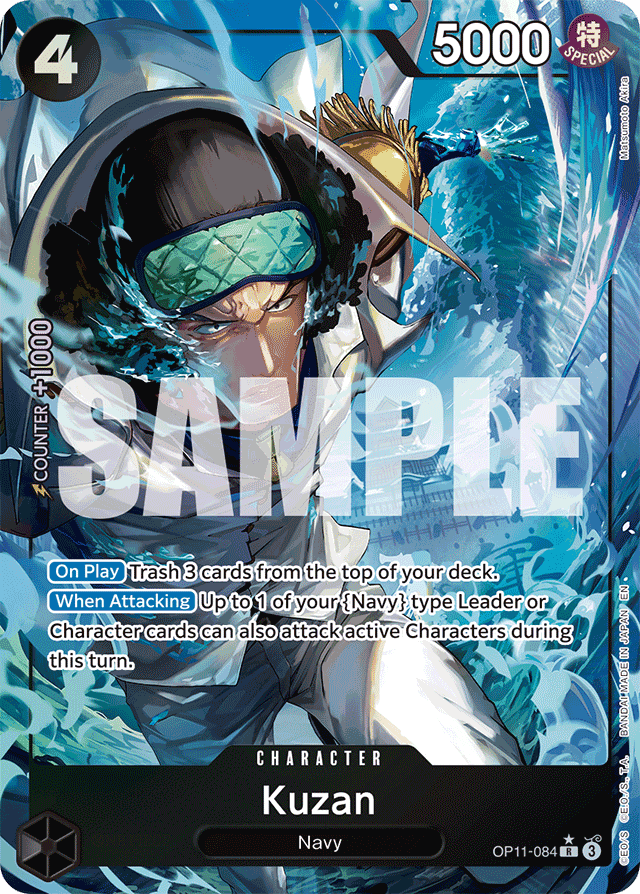 [On Play] Trash 3 cards from the top of your deck. [When Attacking] Up to 1 of your {Navy} type Leader or Character cards can also attack active Characters during this turn.