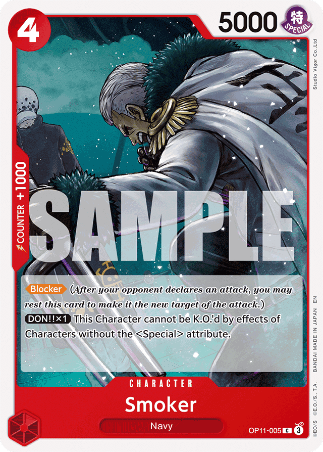 [Blocker] (After your opponent declares an attack, you may rest this card to make it the new target of the attack.) [DON!! x1] This Character cannot be K.O.'d by effects of Characters without the <Special> attribute.