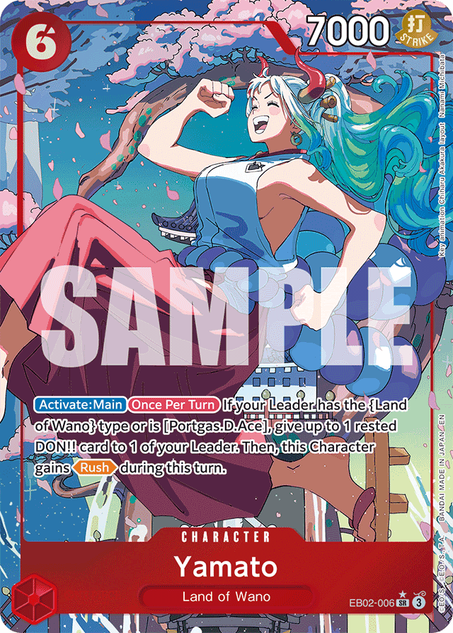 [Activate: Main] [Once Per Turn] If your Leader has the {Land of Wano} type or is [Portgas.D.Ace], give up to 1 rested DON!! card to 1 of your Leader. Then, this Character gains [Rush] during this turn.