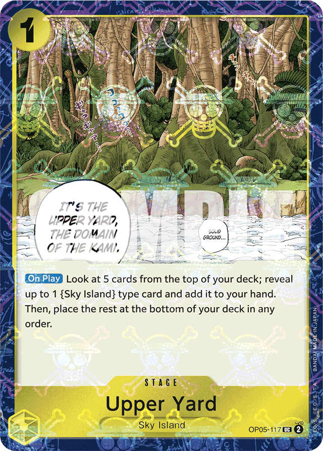 [On Play] Look at 5 cards from the top of your deck; reveal up to 1 {Sky Island} type card and add it to your hand. Then, place the rest at the bottom of your deck in any order.