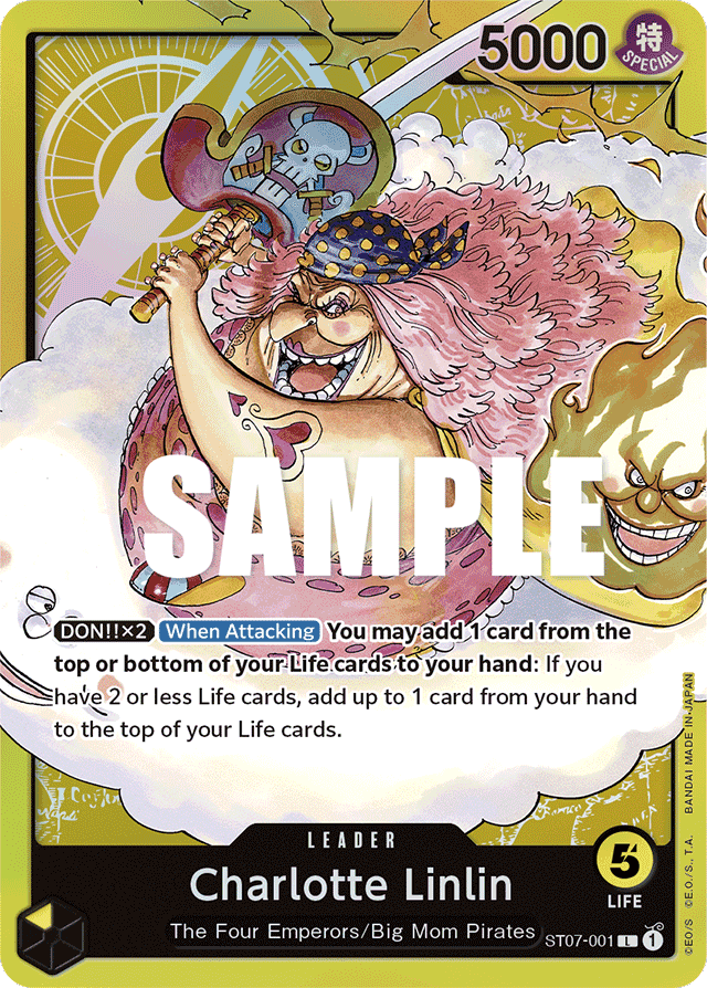 [DON!! x2] [When Attacking] You may add 1 card from the top or bottom of your Life cards to your hand: If you have 2 or less Life cards, add up to 1 card from your hand to the top of your Life cards.