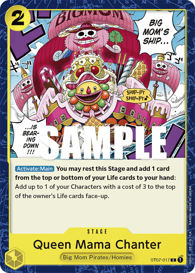 [Activate: Main] You may rest this Stage and add 1 card from the top or bottom of your Life cards to your hand: Add up to 1 of your Characters with a cost of 3 to the top of the owner's Life cards face-up. [Trigger] Play this card.