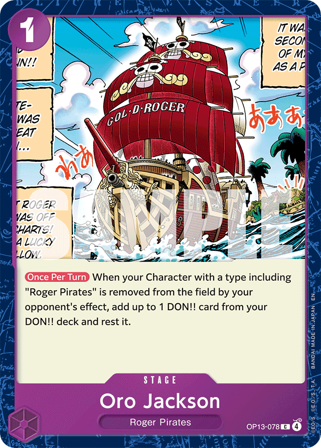 [Once Per Turn] When your Character with a type including "Roger Pirates" is removed from the field by your opponent's effect, add up to 1 DON!! card from your DON!! deck and rest it.