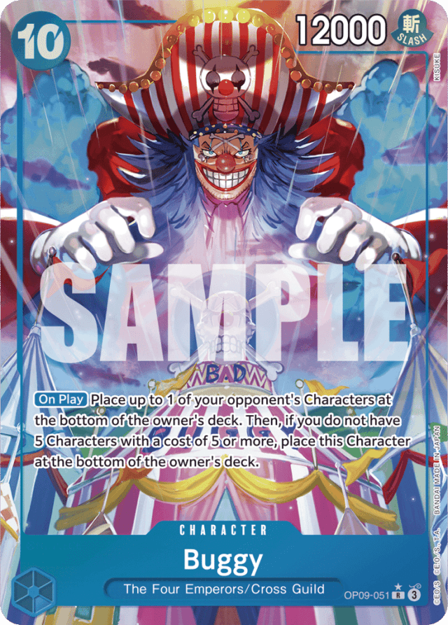 [On Play] Place up to 1 of your opponent's Characters at the bottom of the owner's deck. Then, if you do not have 5 Characters with a cost of 5 or more, place this Character at the bottom of the owner's deck.