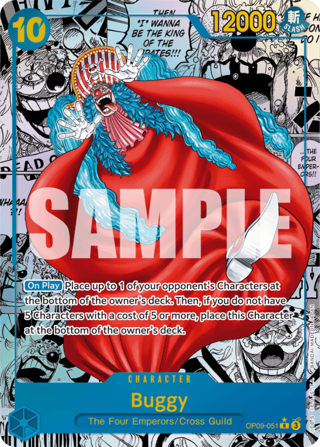 [On Play] Place up to 1 of your opponent's Characters at the bottom of the owner's deck. Then, if you do not have 5 Characters with a cost of 5 or more, place this Character at the bottom of the owner's deck.
