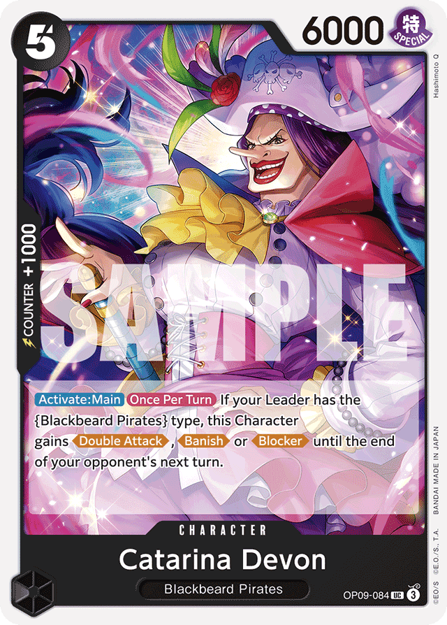 [Activate: Main] [Once Per Turn] If your Leader has the {Blackbeard Pirates} type, this Character gains [Double Attack], [Banish] or [Blocker] until the end of your opponent's next turn.