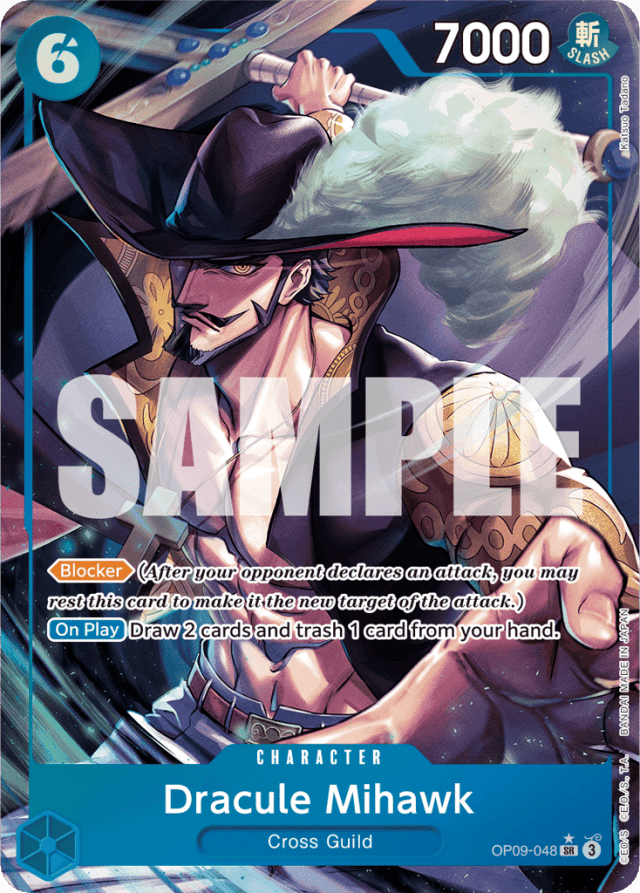 [Blocker] (After your opponent declares an attack, you may rest this card to make it the new target of the attack.) [On Play] Draw 2 cards and trash 1 card from your hand.
