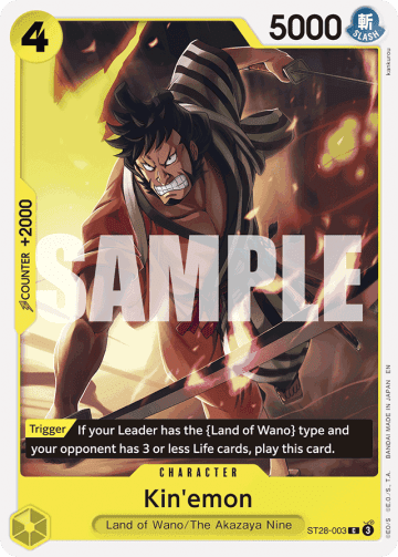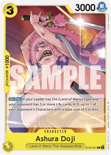 [DON!! x2] [Your Turn] This Character gains +3000 power. [On Play] Look at 5 cards from the top of your deck; reveal up to 1 {Land of Wano} type card with a cost of 2 or more and add it to your hand. Then, place the rest at the bottom of your deck in any order.