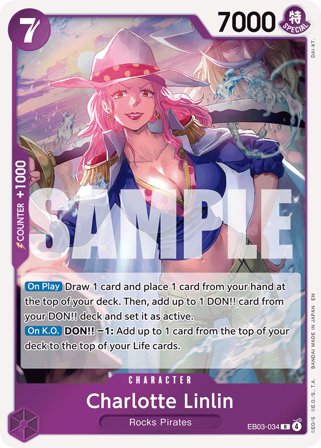 [On Play] Draw 1 card and place 1 card from your hand at the top of your deck. Then, add up to 1 DON!! card from your DON!! deck and set it as active. [On K.O.] DON!! −1: Add up to 1 card from the top of your deck to the top of your Life cards.