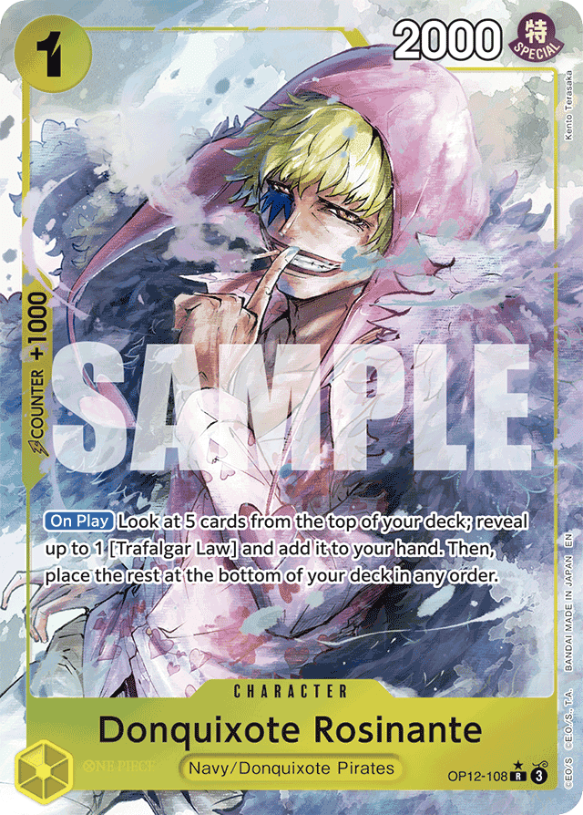 [On Play] Look at 5 cards from the top of your deck; reveal up to 1 [Trafalgar Law] and add it to your hand. Then, place the rest at the bottom of your deck in any order.