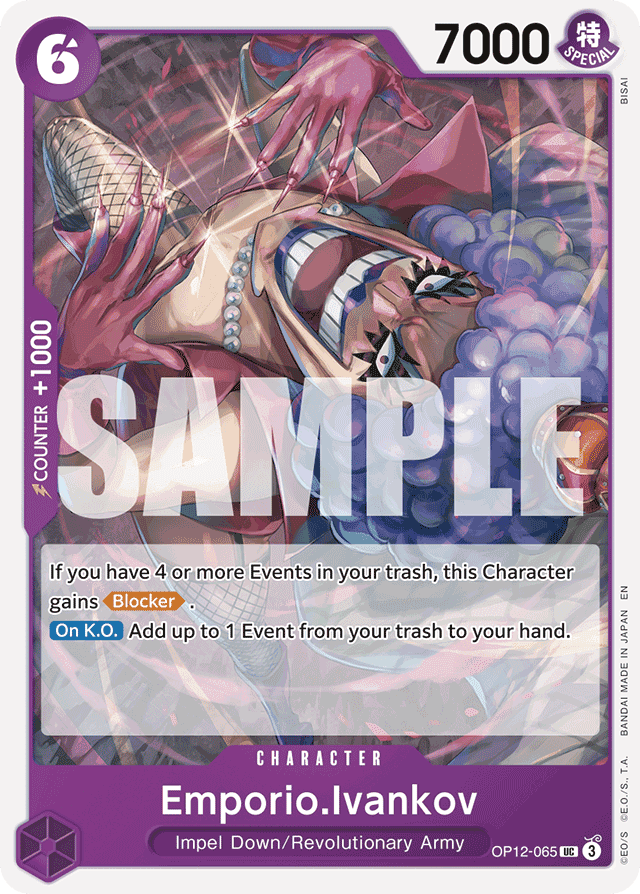 If you have 4 or more Events in your trash, this Character gains [Blocker]. [On K.O.] Add up to 1 Event from your trash to your hand.