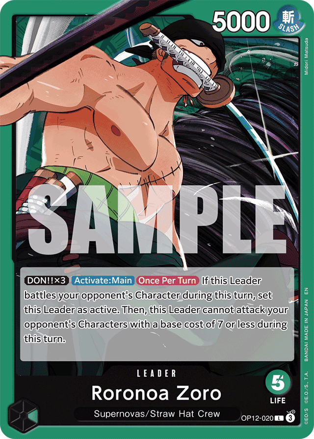 [DON!! x3] [Activate: Main] [Once Per Turn] If this Leader battles your opponent's Character during this turn, set this Leader as active. Then, this Leader cannot attack your opponent's Characters with a base cost of 7 or less during this turn.
