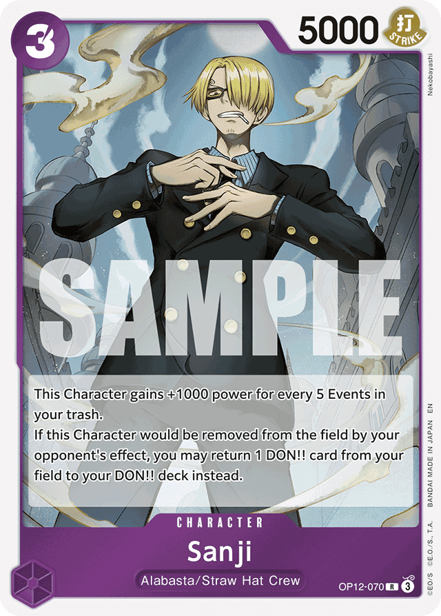 This Character gains +1000 power for every 5 Events in your trash.If this Character would be removed from the field by your opponent's effect, you may return 1 DON!! card from your field to your DON!! deck instead.