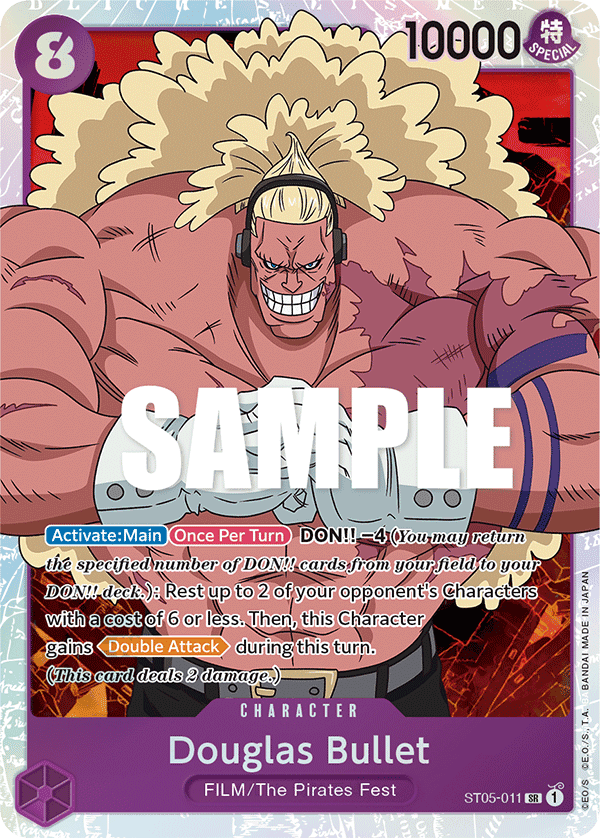 [Activate: Main] [Once Per Turn] DON!! −4 (You may return the specified number of DON!! cards from your field to your DON!! deck.): Rest up to 2 of your opponent's Characters with a cost of 6 or less. Then, this Character gains [Double Attack] during this turn.(This card deals 2 damage.)
