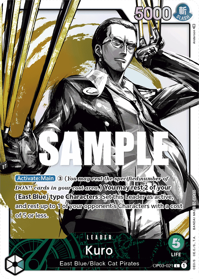 [Activate: Main] ③ (You may rest the specified number of DON!! cards in your cost area.) You may rest 2 of your {East Blue} type Characters: Set this Leader as active, and rest up to 1 of your opponent's Characters with a cost of 5 or less.