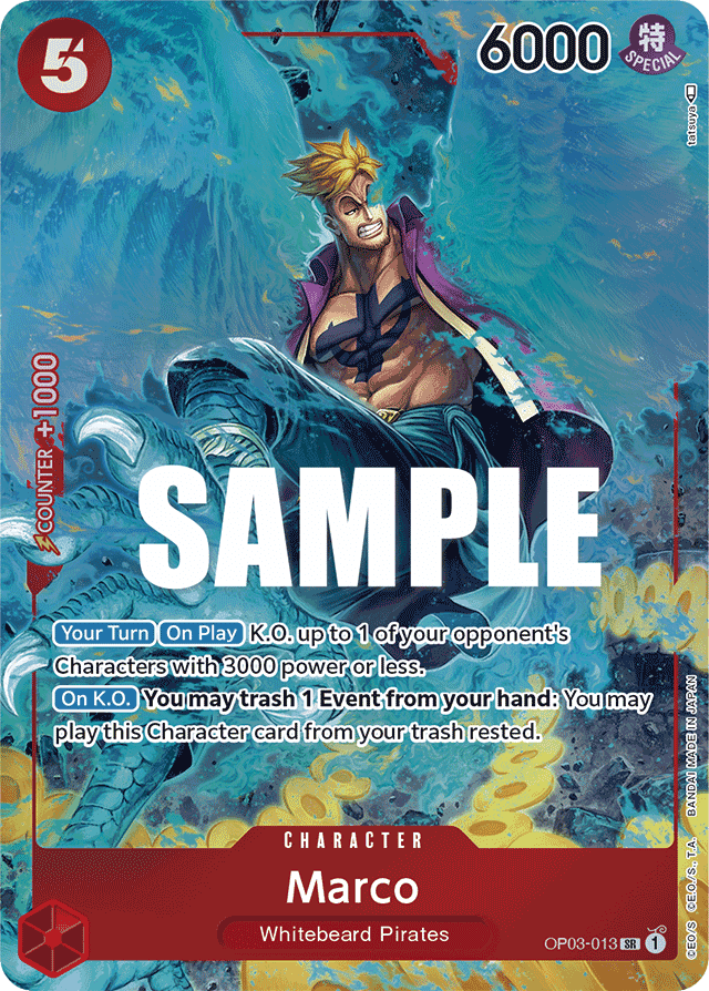 [Your Turn] [On Play] K.O. up to 1 of your opponent's Characters with 3000 power or less. [On K.O.] You may trash 1 Event from your hand: You may play this Character card from your trash rested.