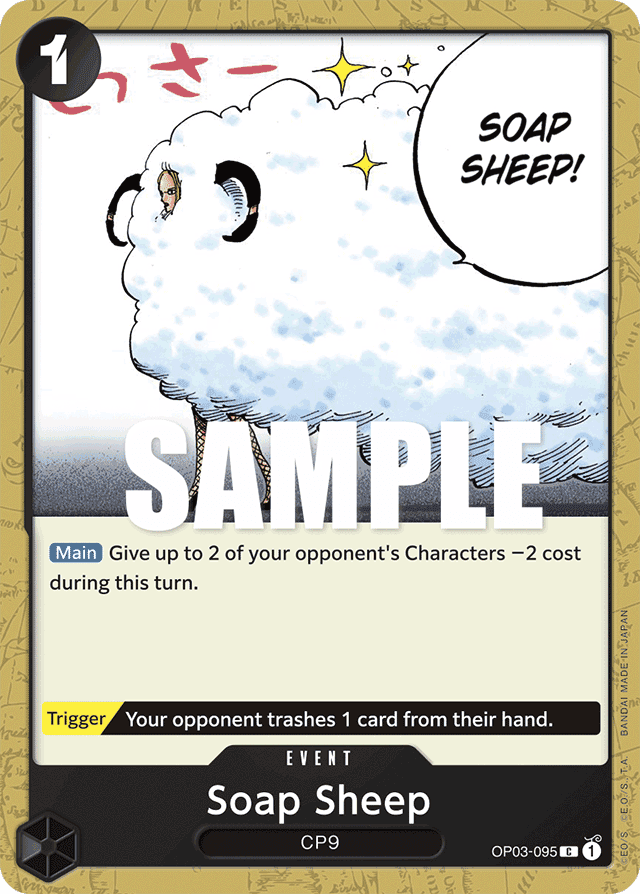 [Main] Give up to 2 of your opponent's Characters −2 cost during this turn. [Trigger] Your opponent trashes 1 card from their hand.