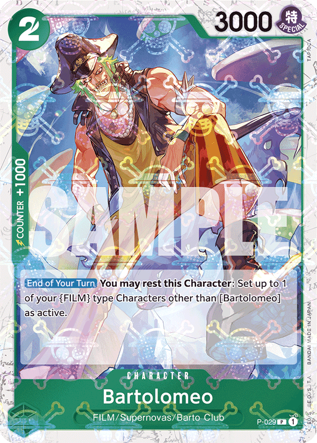[End of Your Turn] You may rest this Character: Set up to 1 of your {FILM} type Characters other than [Bartolomeo] as active.
