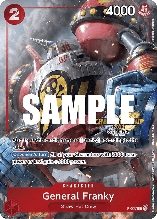 Also treat this card's name as [Franky] according to the rules. [Opponent's Turn] All of your Characters with 3000 base power or less gain +1000 power.