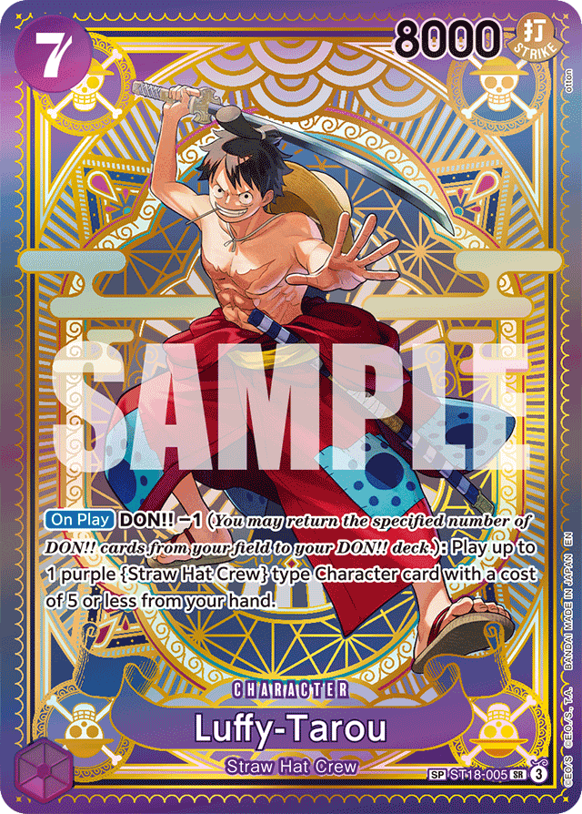 [On Play] DON!! −1 (You may return the specified number of DON!! cards from your field to your DON!! deck.): Play up to 1 purple {Straw Hat Crew} type Character card with a cost of 5 or less from your hand.