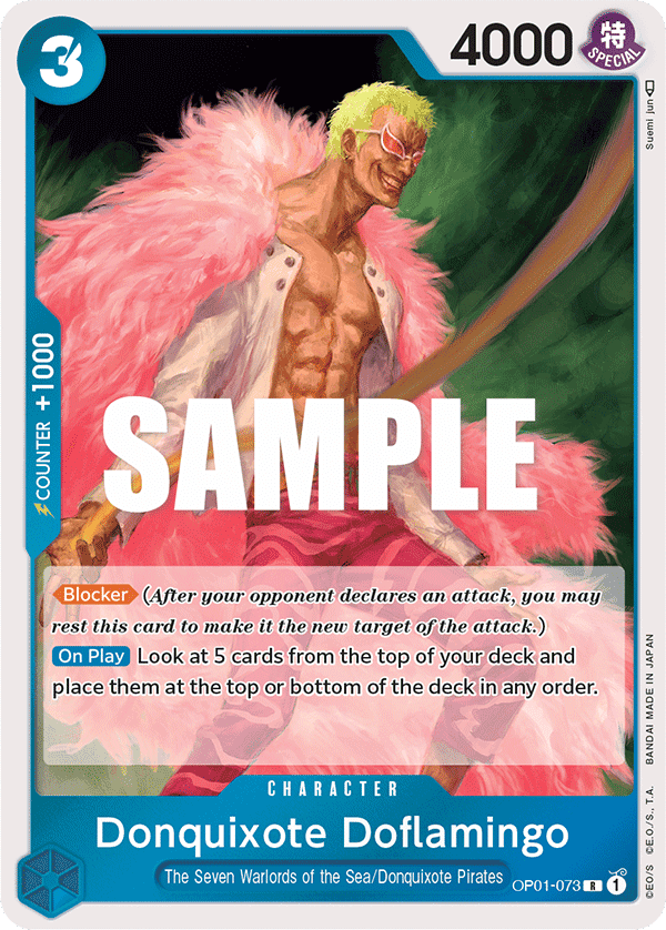 [Blocker] (After your opponent declares an attack, you may rest this card to make it the new target of the attack.) [On Play] Look at 5 cards from the top of your deck and place them at the top or bottom of the deck in any order.