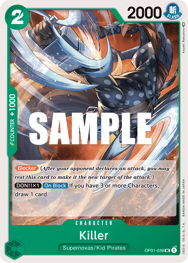 [Blocker] (After your opponent declares an attack, you may rest this card to make it the new target of the attack.) [DON!! x1] [On Block] If you have 3 or more Characters, draw 1 card.