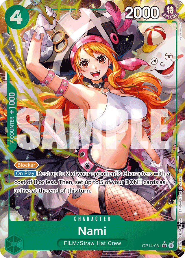 [Blocker] [On Play] Rest up to 2 of your opponent's Characters with a cost of 8 or less. Then, at the end of this turn, set up to 5 of your DON!! cards as active.