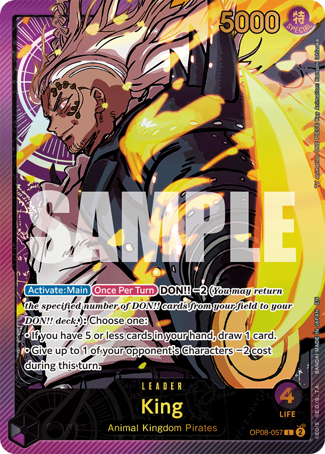 [Activate: Main] [Once Per Turn] DON!! −2 (You may return the specified number of DON!! cards from your field to your DON!! deck.): Choose one:• If you have 5 or less cards in your hand, draw 1 card.• Give up to 1 of your opponent's Characters −2 cost during this turn.