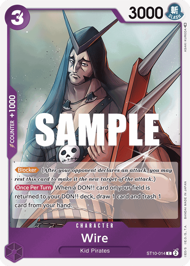 [Blocker] (After your opponent declares an attack, you may rest this card to make it the new target of the attack.) [Once Per Turn] When a DON!! card on your field is returned to your DON!! deck, draw 1 card and trash 1 card from your hand.