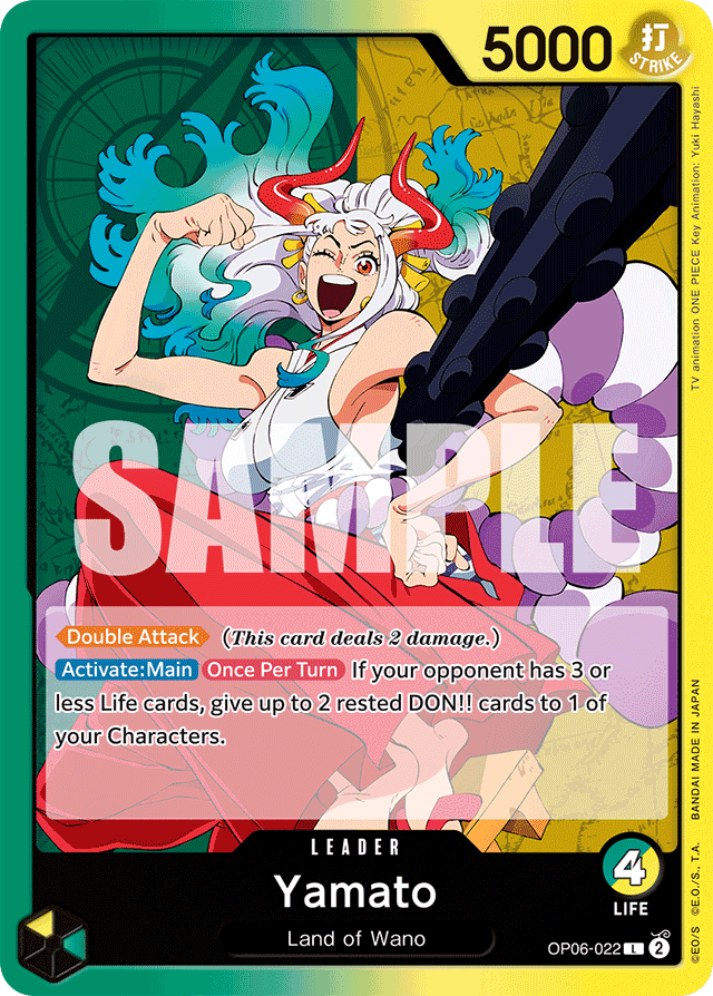 [Double Attack] (This card deals 2 damage.) [Activate: Main] [Once Per Turn] If your opponent has 3 or less Life cards, give up to 2 rested DON!! cards to 1 of your Characters.