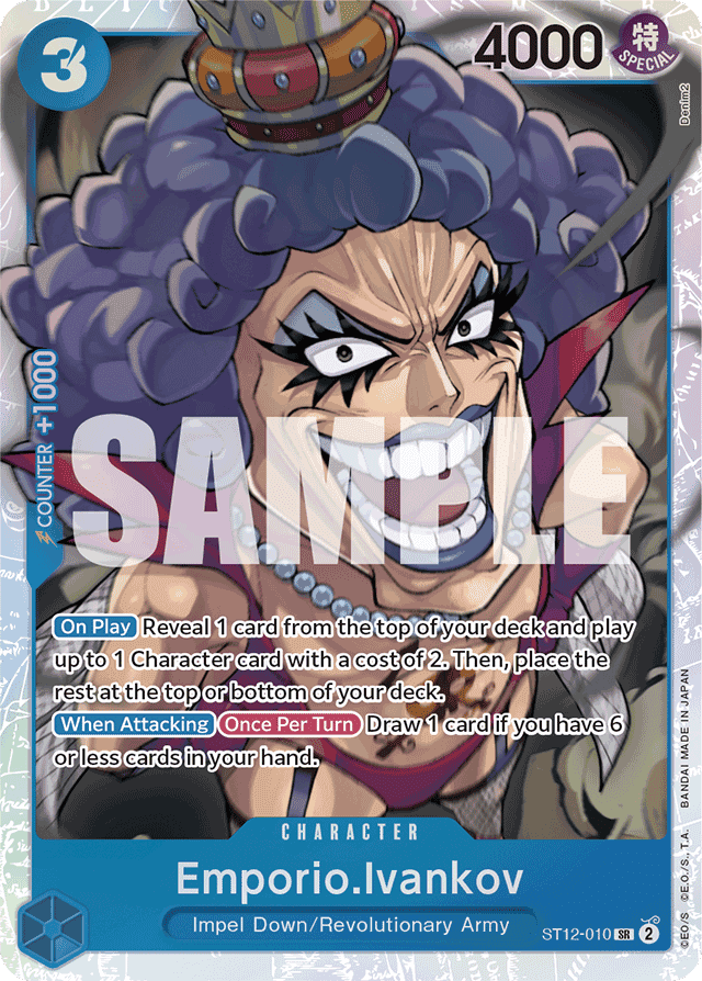 [On Play] Reveal 1 card from the top of your deck and play up to 1 Character card with a cost of 2. Then, place the rest at the top or bottom of your deck. [When Attacking] [Once Per Turn] Draw 1 card if you have 6 or less cards in your hand.