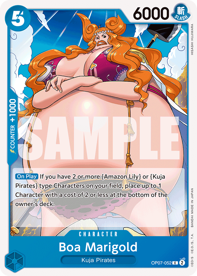 [On Play] If you have 2 or more {Amazon Lily} or {Kuja Pirates} type Characters on your field, place up to 1 Character with a cost of 2 or less at the bottom of the owner's deck.