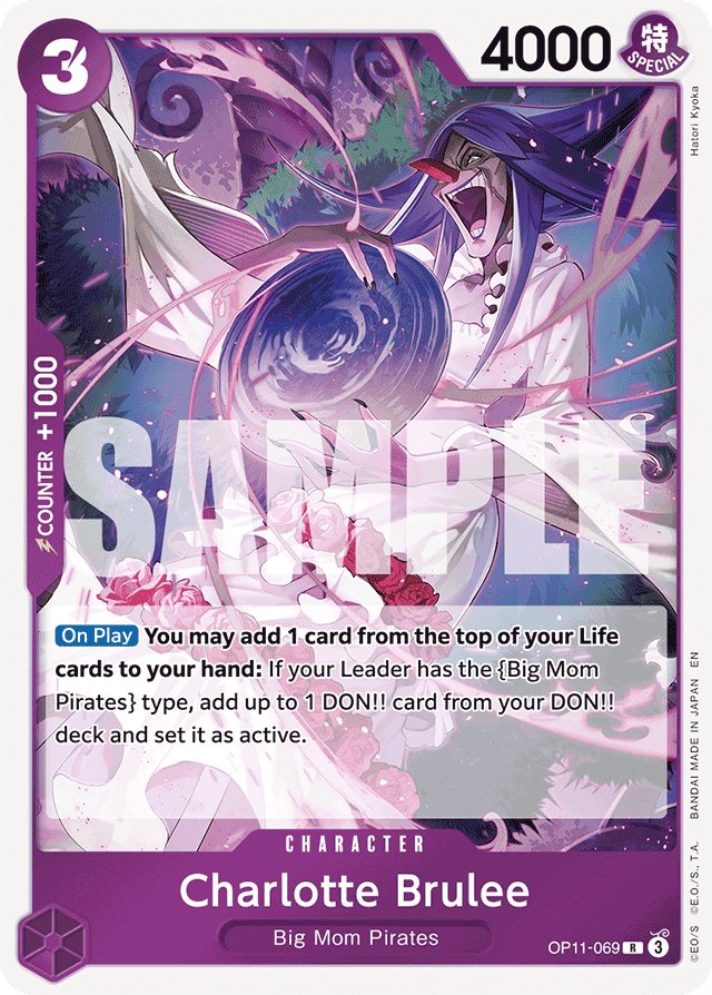 [On Play] You may add 1 card from the top of your Life cards to your hand: If your Leader has the {Big Mom Pirates} type, add up to 1 DON!! card from your DON!! deck and set it as active.