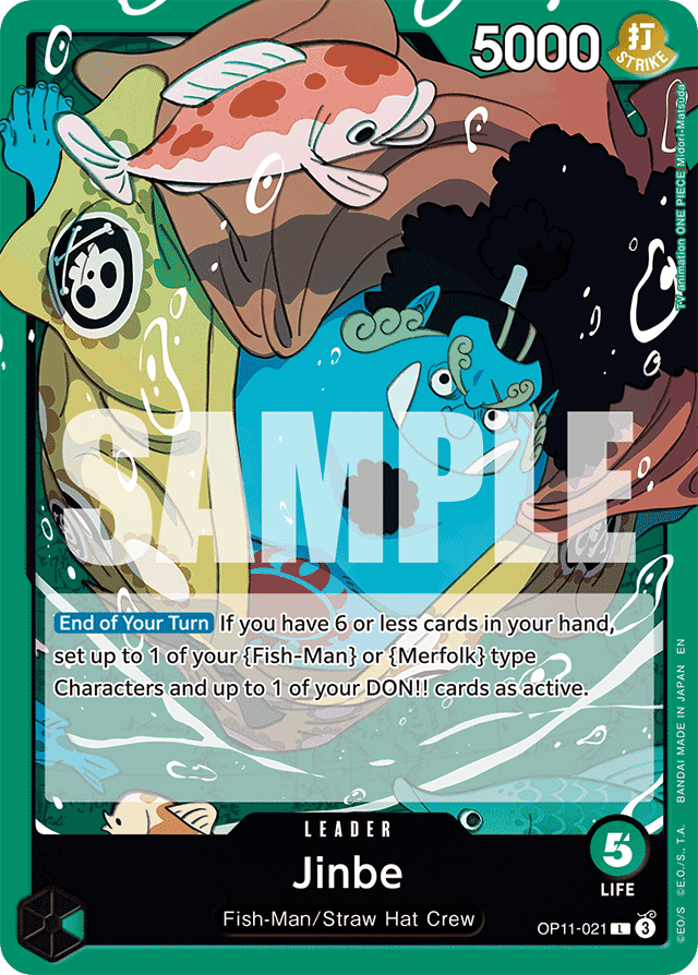 [End of Your Turn] If you have 6 or less cards in your hand, set up to 1 of your {Fish-Man} or {Merfolk} type Characters and up to 1 of your DON!! cards as active.