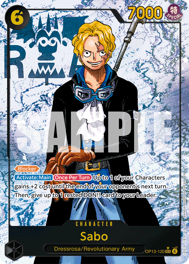 [Blocker] [Activate: Main] [Once Per Turn] Up to 1 of your Characters gains +2 cost until the end of your opponent's next turn. Then, give up to 1 rested DON!! card to your Leader.