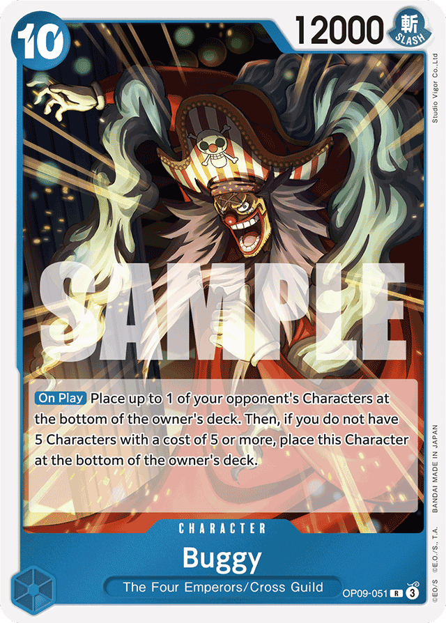 [On Play] Place up to 1 of your opponent's Characters at the bottom of the owner's deck. Then, if you do not have 5 Characters with a cost of 5 or more, place this Character at the bottom of the owner's deck.