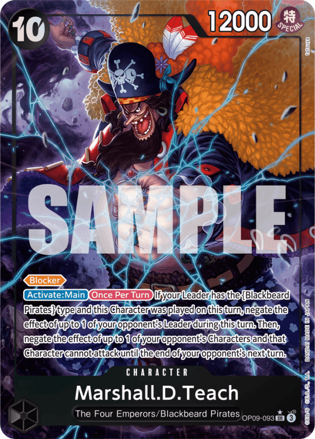 [Blocker] [Activate: Main] [Once Per Turn] If your Leader has the {Blackbeard Pirates} type and this Character was played on this turn, negate the effect of up to 1 of your opponent's Leader during this turn. Then, negate the effect of up to 1 of your opponent's Characters and that Character cannot attack until the end of your opponent's next turn.
