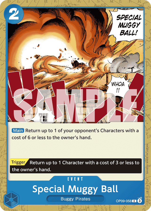 [Main] Return up to 1 of your opponent's Characters with a cost of 6 or less to the owner's hand. [Trigger] Return up to 1 Character with a cost of 3 or less to the owner's hand.