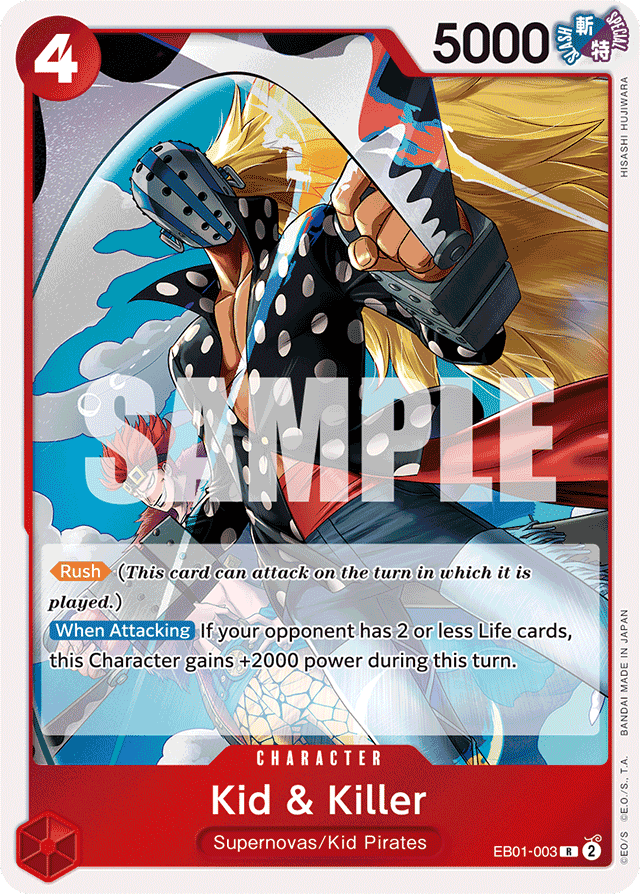 [Rush] (This card can attack on the turn in which it is played.) [When Attacking] If your opponent has 2 or less Life cards, this Character gains +2000 power during this turn.