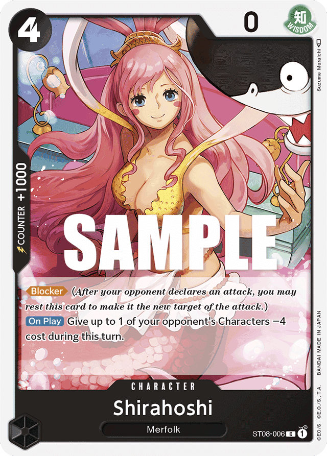 [Blocker] (After your opponent declares an attack, you may rest this card to make it the new target of the attack.) [On Play] Give up to 1 of your opponent's Characters −4 cost during this turn.