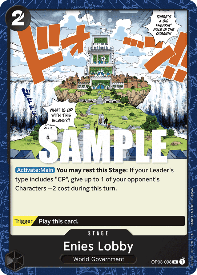 [Activate: Main] You may rest this Stage: If your Leader's type includes "CP", give up to 1 of your opponent's Characters −2 cost during this turn. [Trigger] Play this card.
