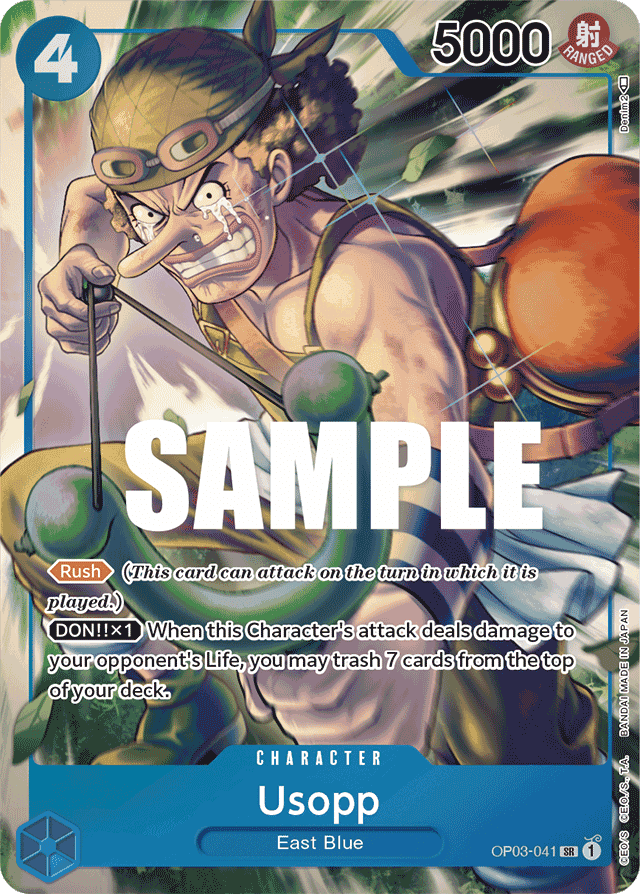 [Rush] (This card can attack on the turn in which it is played.) [DON!! x1] When this Character's attack deals damage to your opponent's Life, you may trash 7 cards from the top of your deck.