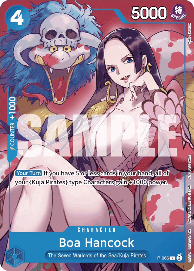 [Your Turn] If you have 5 or less cards in your hand, all of your {Kuja Pirates} type Characters gain +1000 power.
